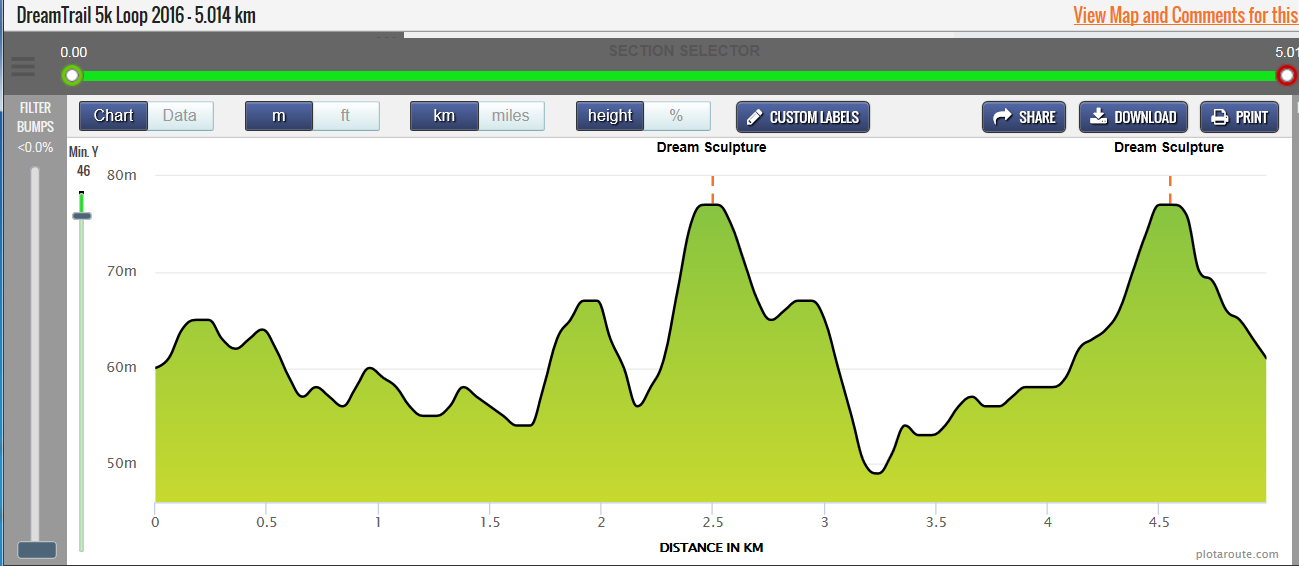 View route map for DreamTrail 5k Loop 2016 on plotaroute.com